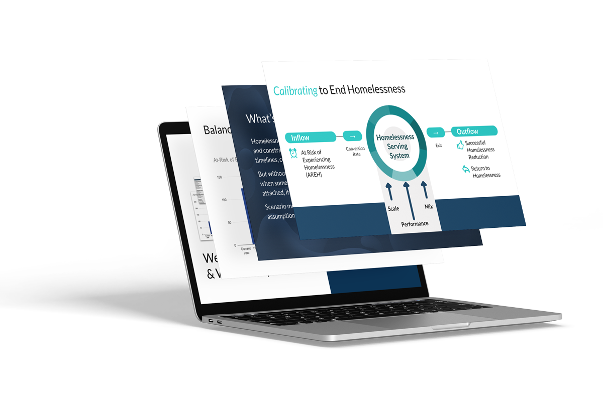 Simulate housing and homelessness scenarios to inform strategic, cost-effective, and equitable decisions for your community’s future.